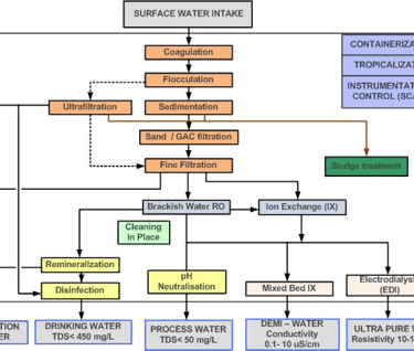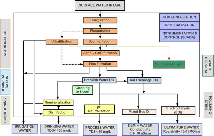 Due to the high cost of drinking water and the fact that water is not always available, more and more industries and municipalities use treated surface water. Normally the surface water needs to be treated before it has the required water quality. Surface water typically contains a high suspended solids content, bacteria, algae, organic matter, creating bad taste and odour. In some areas, like river estuaries, surface water can be brackish, reaching up to 8000 mg/L of salts.